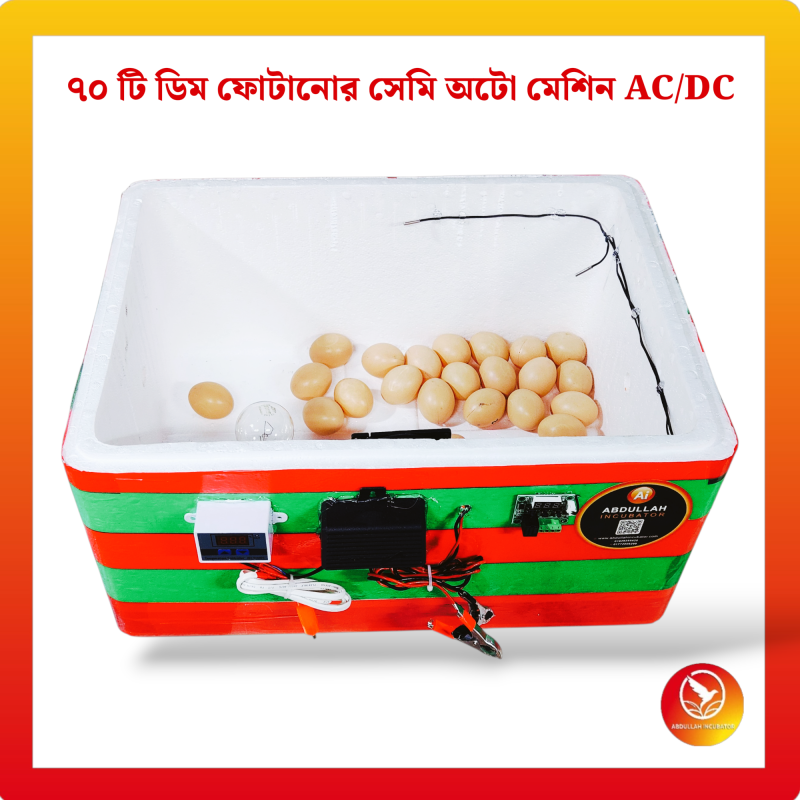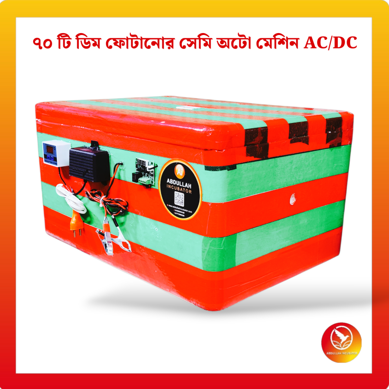 ৭০ ডিমের ইনকিউবেটর মেশিন হলো একটি আধুনিক ডিম ফোটানোর যন্ত্র, যা ১০০% সফলভাবে বাচ্চা ফোটাতে সক্ষম। মেশিনটিতে স্বয়ংক্রিয় টেম্পারেচার কন্ট্রোল, আর্দ্রতা নিয়ন্ত্রণ ব্যবস্থা এবং বিদ্যুৎ সাশ্রয়ী হিটিং সিস্টেম রয়েছে।