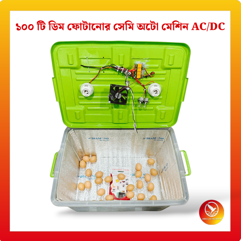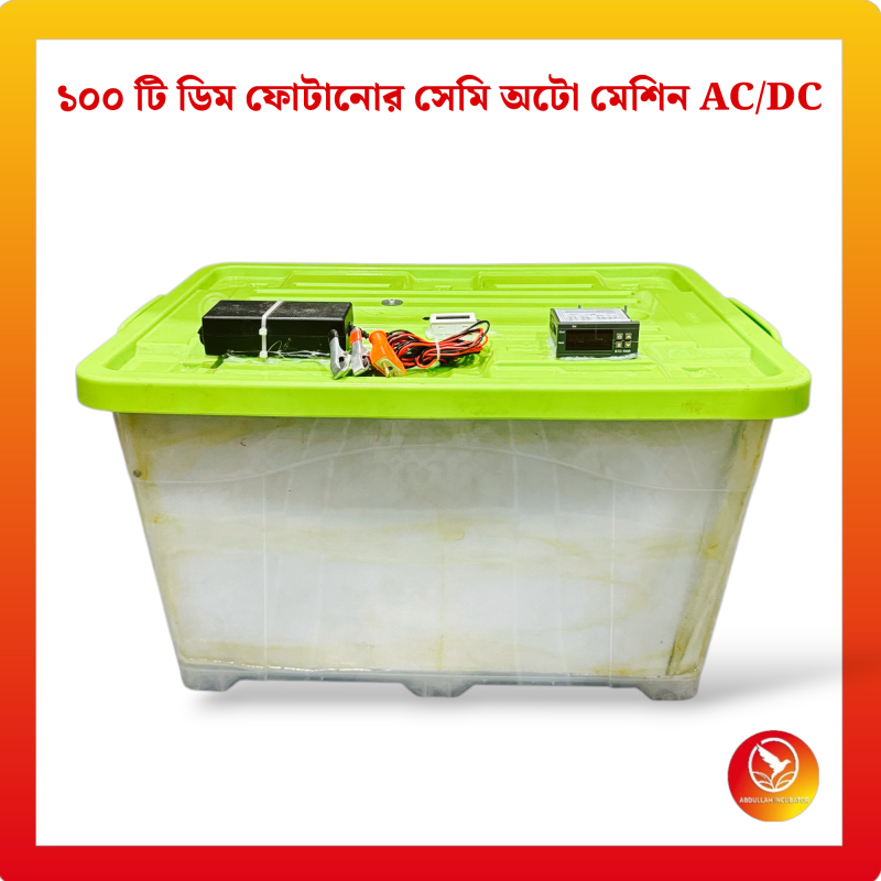 ১০০ ডিমের ইনকিউবেটর মেশিন হলো একটি আধুনিক ডিম ফোটানোর যন্ত্র, যা ১০০% সফলভাবে বাচ্চা ফোটাতে সক্ষম। মেশিনটিতে স্বয়ংক্রিয় টেম্পারেচার কন্ট্রোল, আর্দ্রতা নিয়ন্ত্রণ ব্যবস্থা এবং বিদ্যুৎ সাশ্রয়ী হিটিং সিস্টেম রয়েছে।