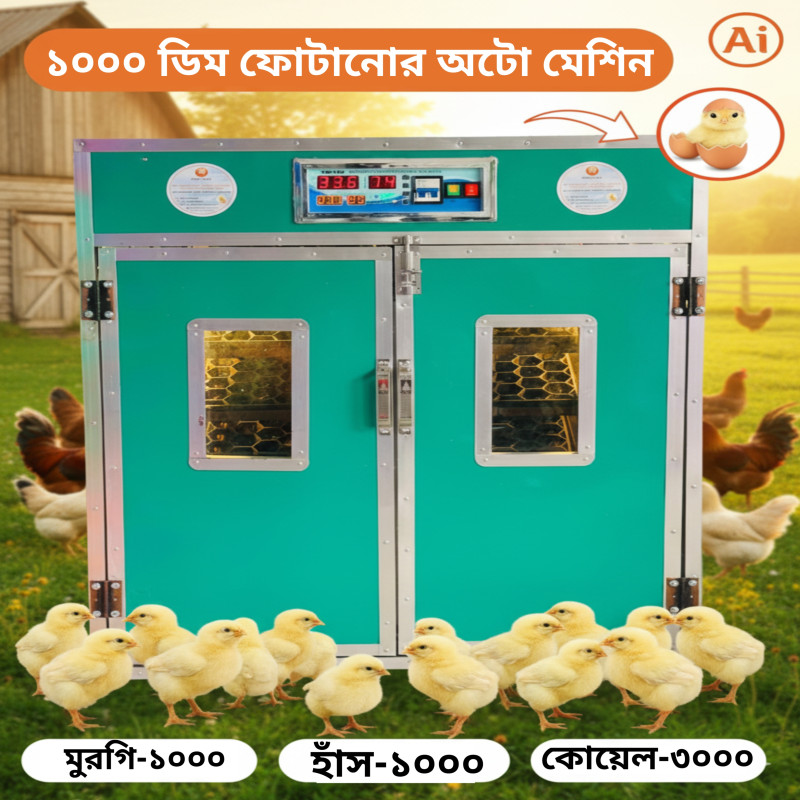 ১০০০ ডিমের ইনকিউবেটর মেশিন হলো একটি আধুনিক ডিম ফোটানোর যন্ত্র, যা ১০০% সফলভাবে বাচ্চা ফোটাতে সক্ষম। মেশিনটিতে স্বয়ংক্রিয় টেম্পারেচার কন্ট্রোল, আর্দ্রতা নিয়ন্ত্রণ ব্যবস্থা এবং বিদ্যুৎ সাশ্রয়ী হিটিং সিস্টেম রয়েছে।