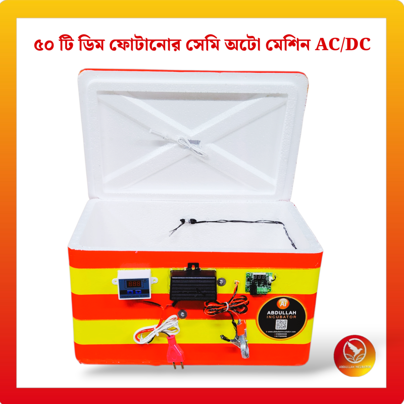 ৫০ ডিমের ইনকিউবেটর মেশিন হলো একটি আধুনিক ডিম ফোটানোর যন্ত্র, যা ১০০% সফলভাবে বাচ্চা ফোটাতে সক্ষম। মেশিনটিতে স্বয়ংক্রিয় টেম্পারেচার কন্ট্রোল, আর্দ্রতা নিয়ন্ত্রণ ব্যবস্থা এবং বিদ্যুৎ সাশ্রয়ী হিটিং সিস্টেম রয়েছে।