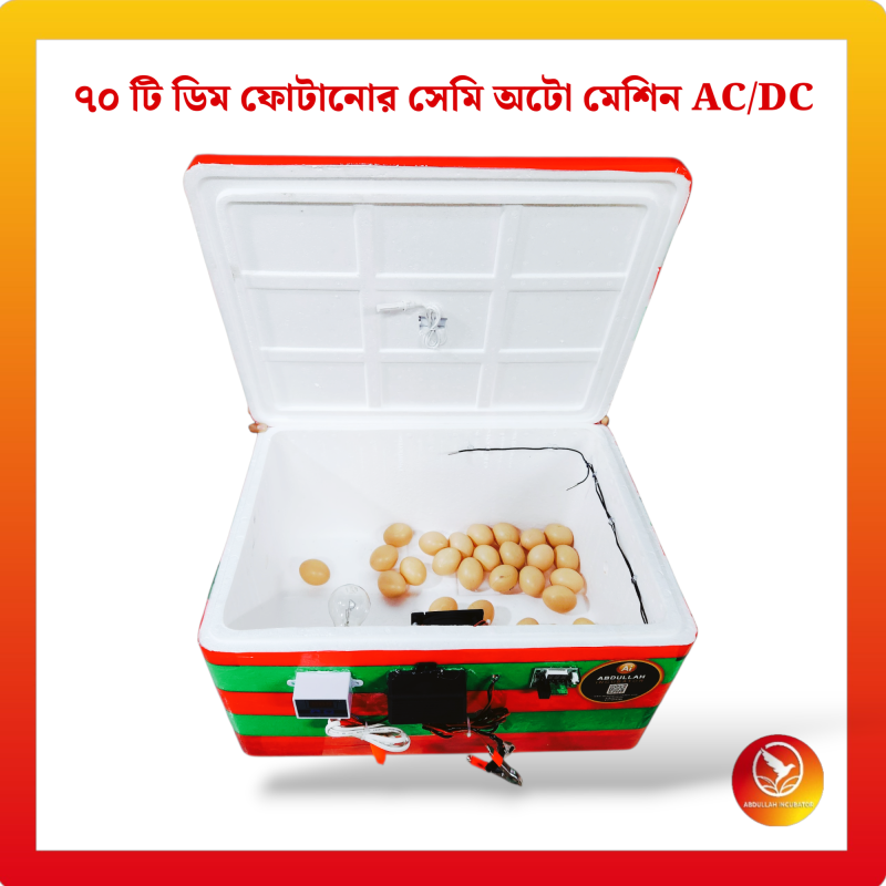 ৭০ ডিমের ইনকিউবেটর মেশিন হলো একটি আধুনিক ডিম ফোটানোর যন্ত্র, যা ১০০% সফলভাবে বাচ্চা ফোটাতে সক্ষম। মেশিনটিতে স্বয়ংক্রিয় টেম্পারেচার কন্ট্রোল, আর্দ্রতা নিয়ন্ত্রণ ব্যবস্থা এবং বিদ্যুৎ সাশ্রয়ী হিটিং সিস্টেম রয়েছে।